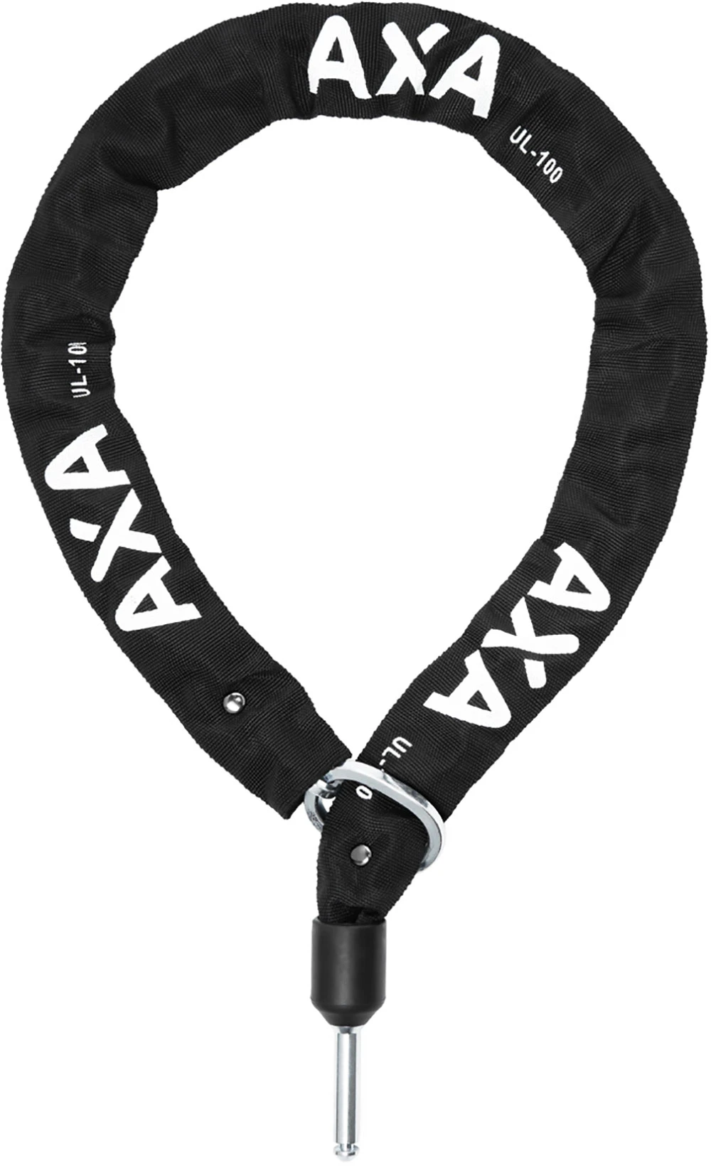 Il peut être monté avec le kit de fixation flexible qui convient à tous les tubes de cadre. La chaîne à encastrer ULC 100 est en acier trempé et possède une goupille de 10 mm de diamètre. La chaîne mesure 100 cm de long et peut être utilisée pour attacher le vélo à des objets fixes tels que des lampadaires ou des clôtures. Elle est livrée dans une housse noire en polyester. En option, la chaîne ULC Plug-In peut être utilisée pour une protection supplémentaire.