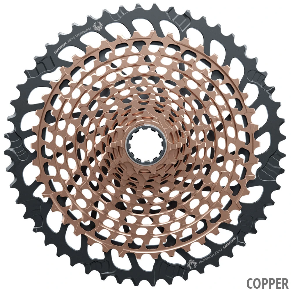 On passe plus de temps plus haut dans la cassette, là où le transfert de puissance des athlètes est le plus efficace et où l’usure est minimisée. Doté de l’architecture X-Dome™ la plus solide du secteur et du corps de driver XD™ éprouvé, il est également rétrocompatible pour offrir aux coureurs encore plus d’options de mise à niveau Eagle™ pour leurs vélos actuels. Avec de multiples titres olympiques, de Coupe du monde et de Championnat du monde, elle s’accorde aussi parfaitement avec les composants compatibles XX1 Eagle AXS™. La cassette XG-1299 utilise toute la profondeur du nouveau système de couleurs Eagle™. Disponible en noir, or, arc-en-ciel et le tout nouveau cuivre, la cassette XG-1299 complète l’expression des vélos les plus accomplis et les plus recherchés au monde.