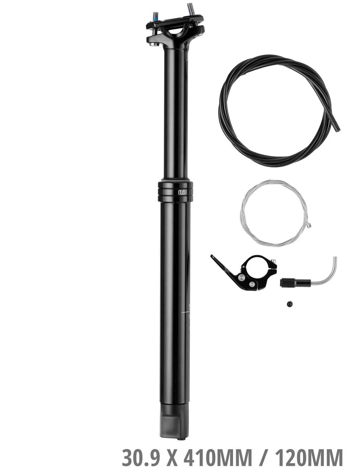 La tige de selle TRIPLE EIGHT Dropper Post PRO “Inside”, réglable en continu, est particulièrement adaptée aux cadres à routage interne et la plage de réglage peut être actionnée via la télécommande du cockpit. La télécommande permet de garder les deux mains sur le guidon et offre également une sécurité de conduite maximale. Le poids maximal recommandé est de 110 kg.
